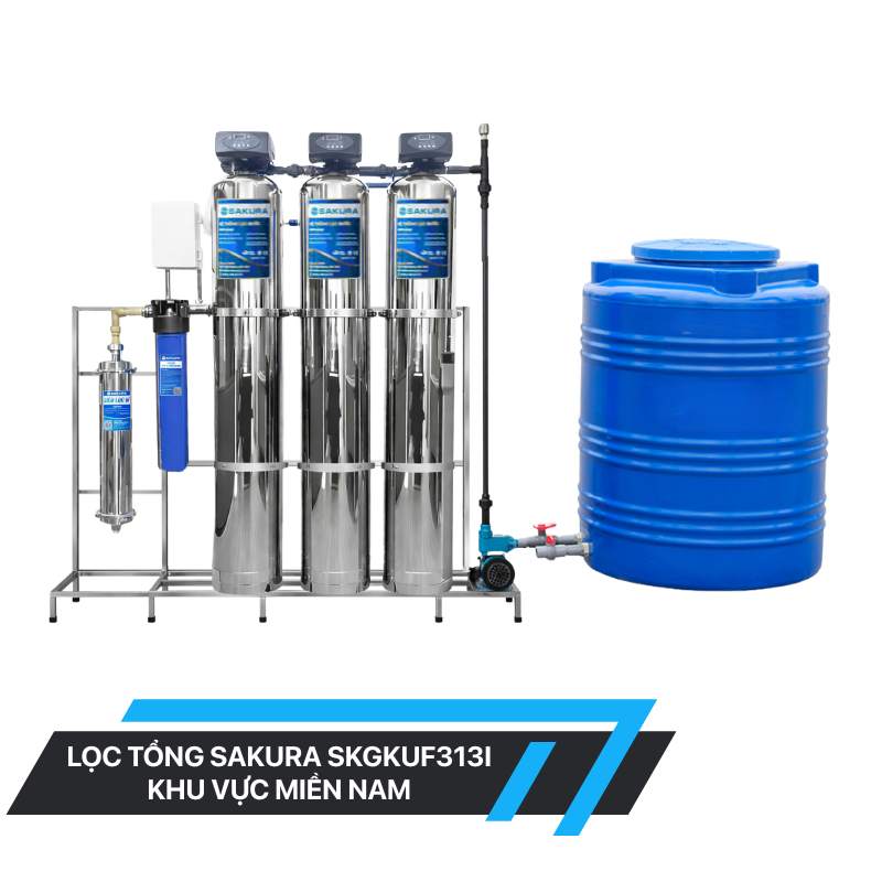 Hệ thống lọc nước giếng khoan inox 304 3 cột áp lực tự động sục rửa có màng siêu lọc UF Sakura SKGKUF313I