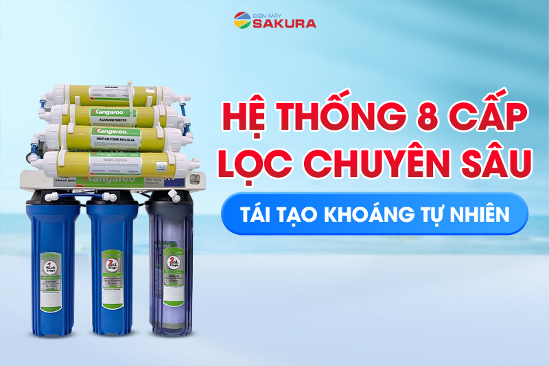 Máy lọc nước RO Kangaroo 8 lõi lọc KG06G4 (Không tủ) thuộc dòng máy lọc nước RO thế hệ mới, được trang bị hệ thống 8 lõi lọc chuyên sâu, không chỉ mang đến nguồn nước tinh khiết mà còn giữ được những khoáng chất thiết yếu tốt cho sức khỏe. Để hiểu rõ hơn, hãy cùng Điện máy Sakura tìm hiểu chi tiết ngay!